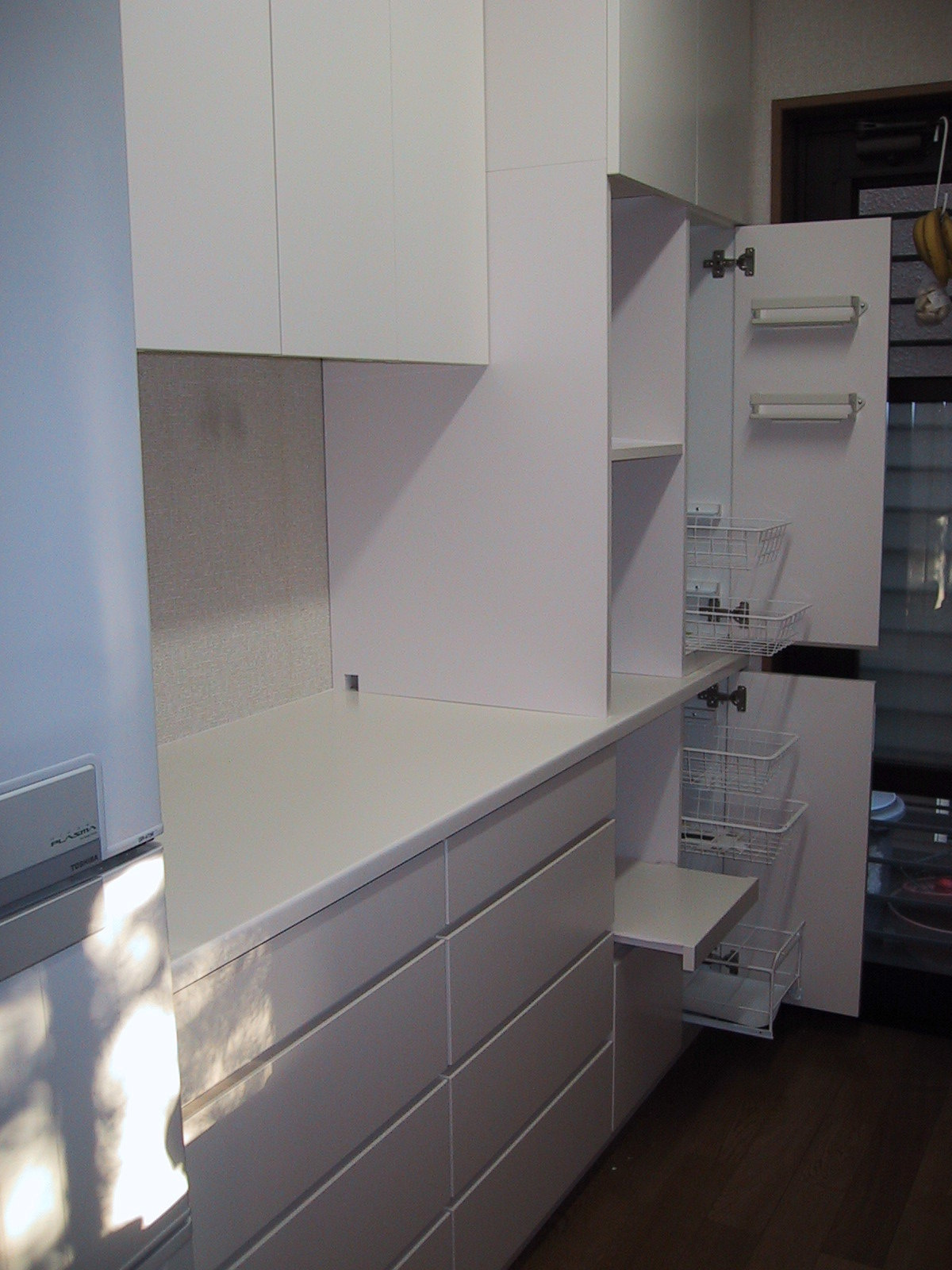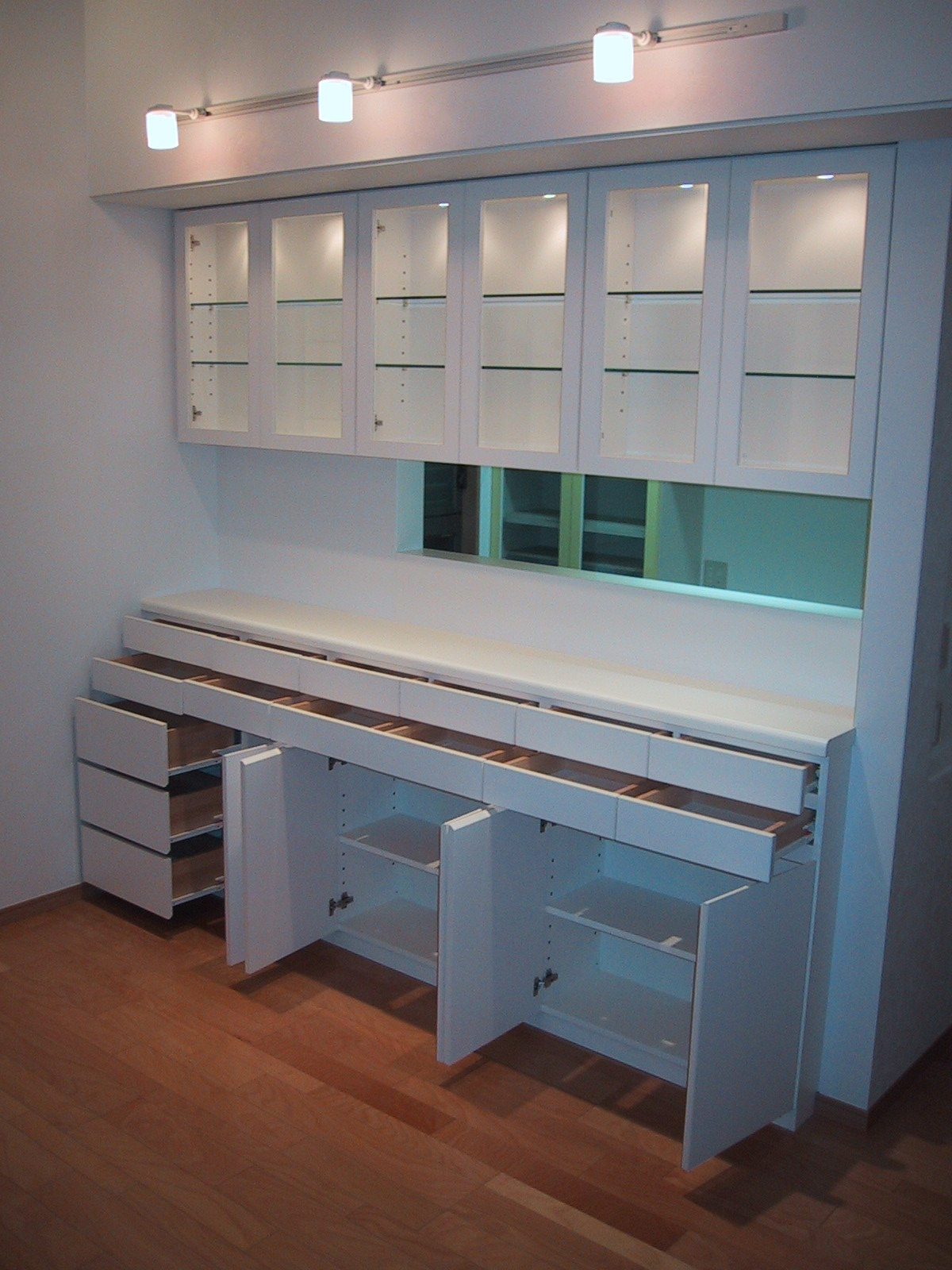 対面カウンター下収納(上部:グラス収納) ・ポリ