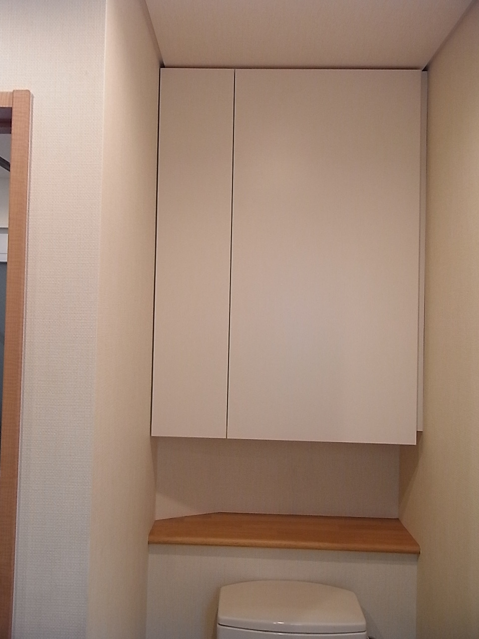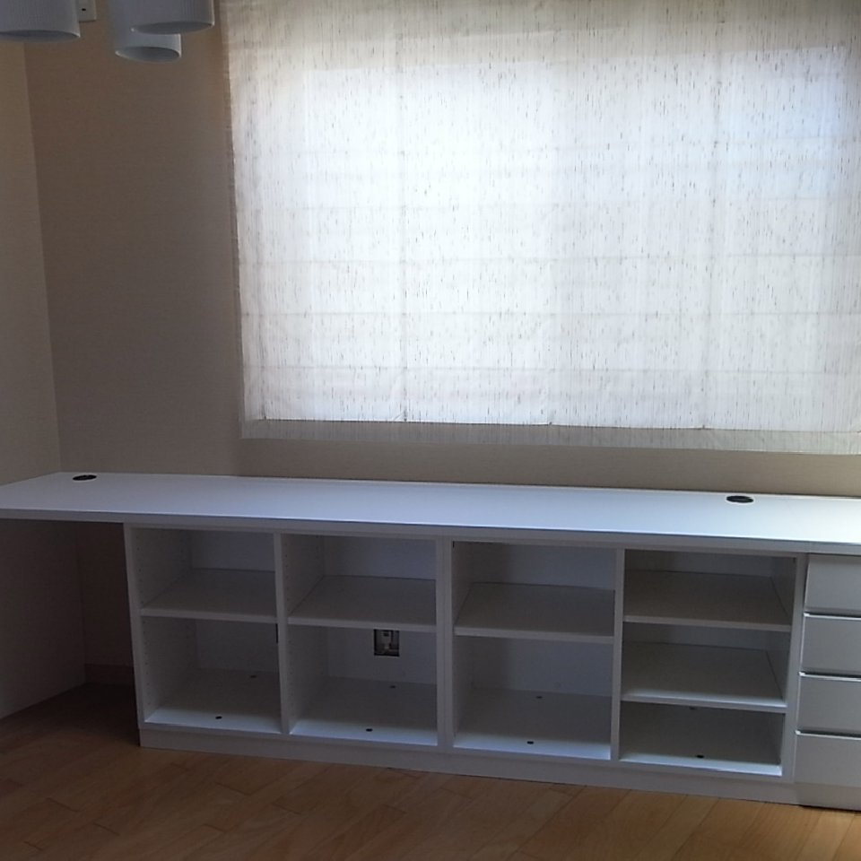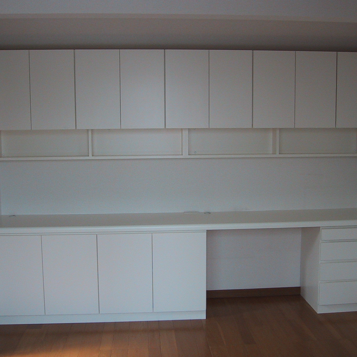 パソコンディス・吊戸下:オープン小物棚付・ポリ